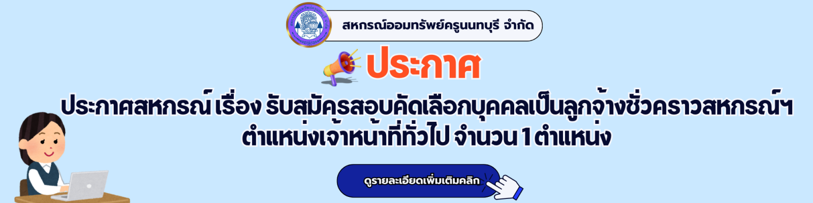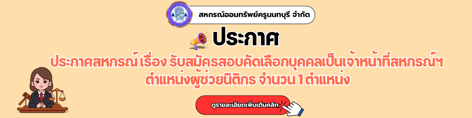 ประกาศสหกรณ์ เรื่อง กำหนดวันสรรหาประธานกรรมการและกรรมการดำเนินการ สหกรณ์ออมทรัพย์ครูนนทบุรี จำกัด ชุดที่ 67 ประจำปี 2569 และกำหนดวันประชุมสามัญประจำปี 2568