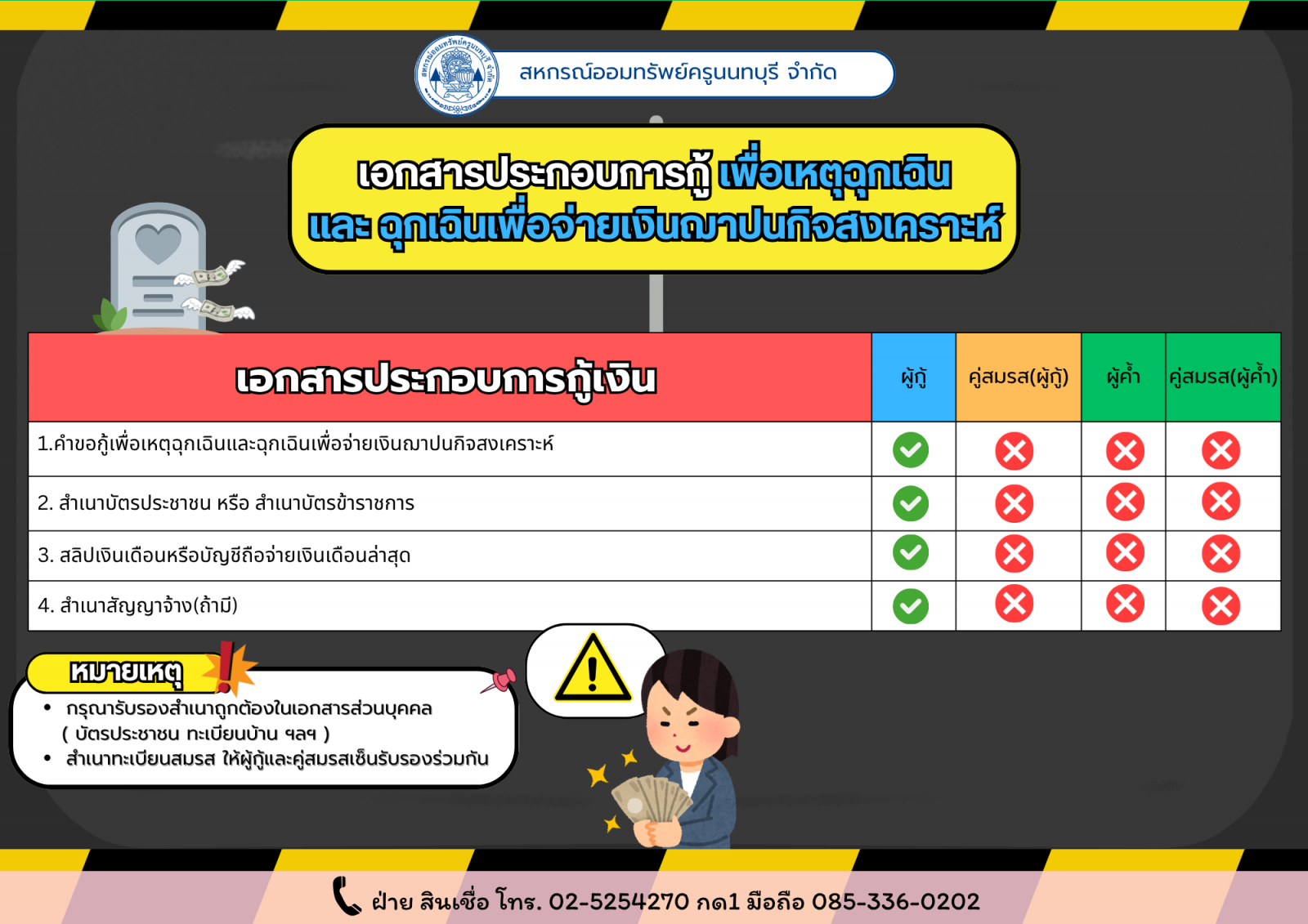 เงินกู้ฉุกเฉินเพื่อจ่ายเงินสงเคราะห์สมาคมฌาปนกิจสงเคราะห์ อัตราดอกเบี้ย 3.50 % |