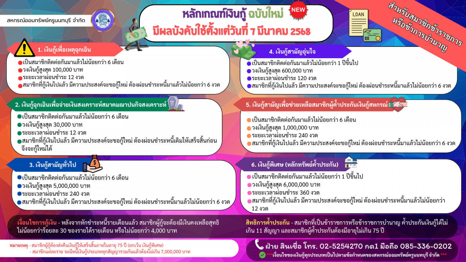 เงินกู้เพื่อเหตุฉุกเฉิน อัตราดอกเบี้ย 6.00 % |