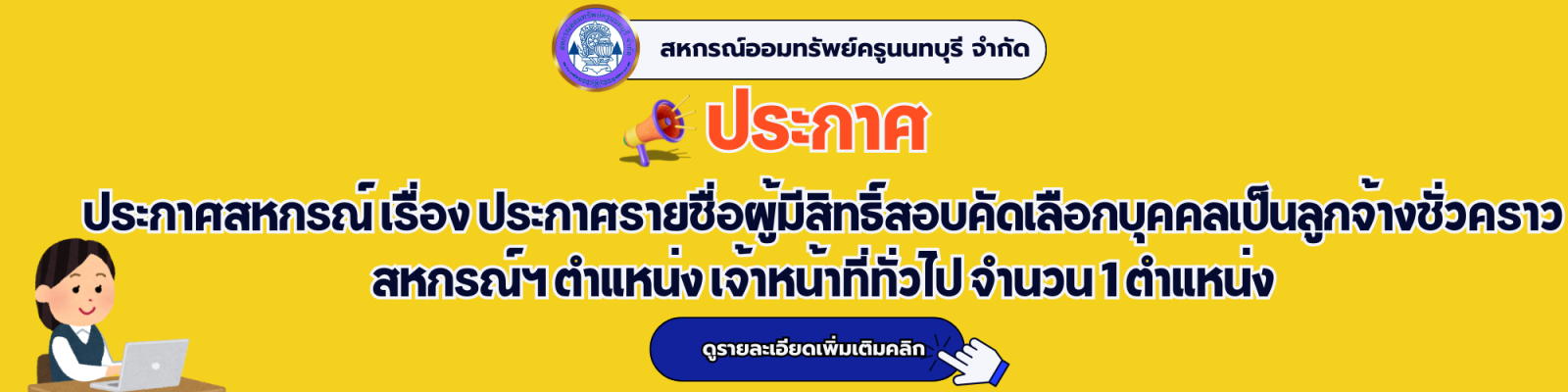 ประกาศสหกรณ์ เรื่อง กำหนดวันสรรหาประธานกรรมการและกรรมการดำเนินการ สหกรณ์ออมทรัพย์ครูนนทบุรี จำกัด ชุดที่ 67 ประจำปี 2569 และกำหนดวันประชุมสามัญประจำปี 2568