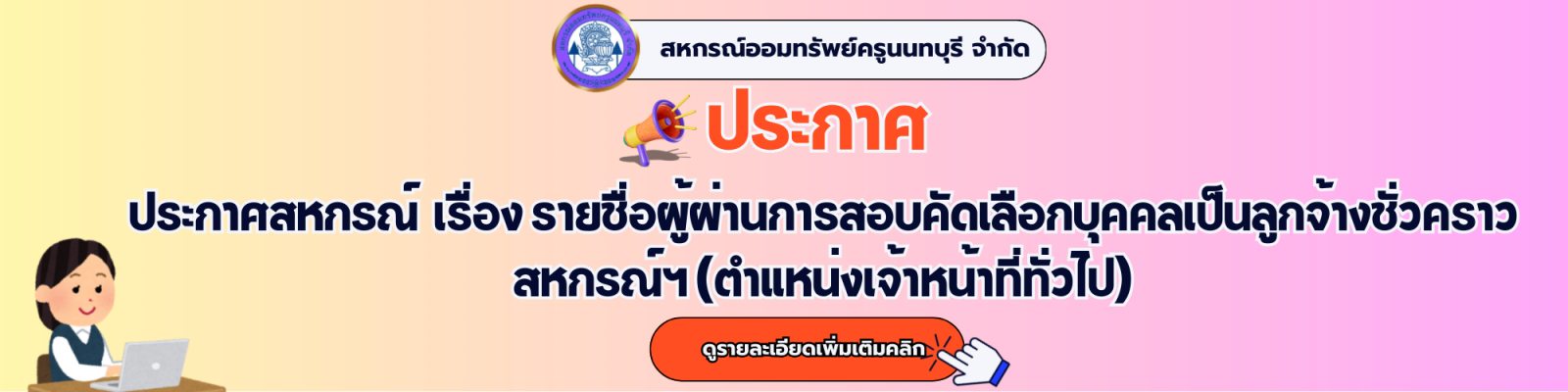 ประกาศสหกรณ์ เรื่อง กำหนดวันสรรหาประธานกรรมการและกรรมการดำเนินการ สหกรณ์ออมทรัพย์ครูนนทบุรี จำกัด ชุดที่ 67 ประจำปี 2569 และกำหนดวันประชุมสามัญประจำปี 2568
